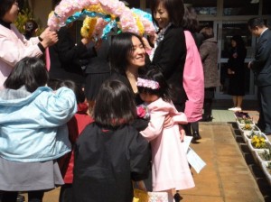 最後は、先生からお花を手渡されて、アーチを抜けていきました。
